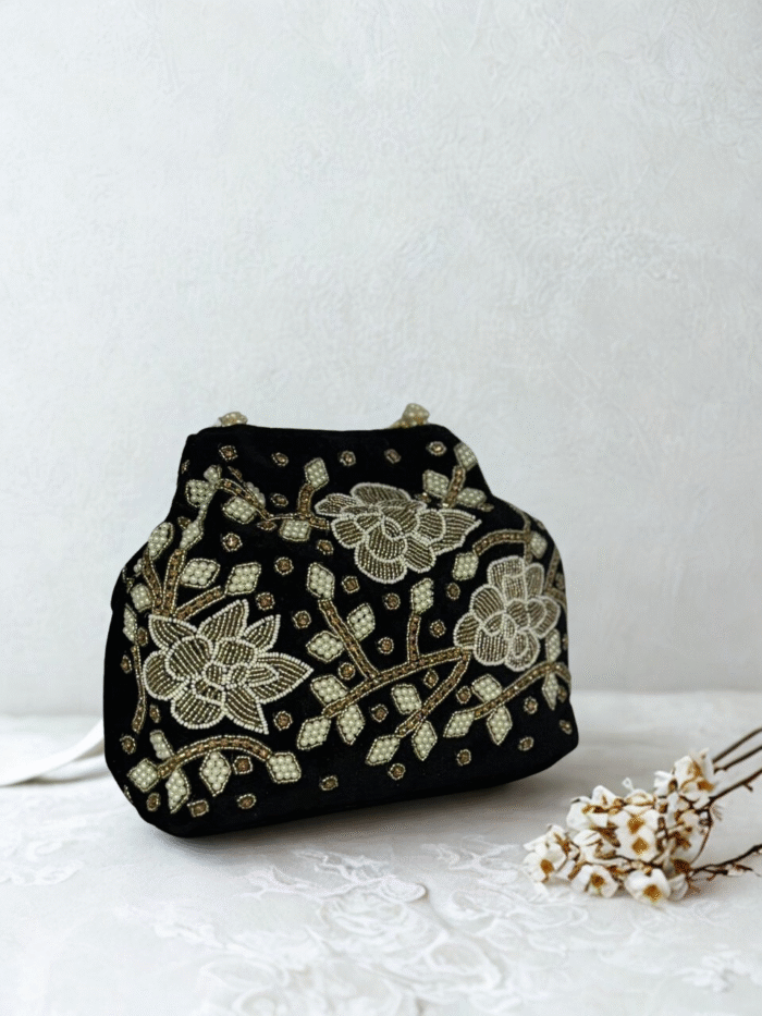 Unleash your wild charm with Boho Tales — a handcrafted potli bag that brings color, culture, and cool-girl glam together in one irresistible package. Featuring bold multicolored woven stripes, intricate lace accents, and playful mirror work embroidery, this bag is made to stand out. The pearl-beaded drawstring adds just the right touch of elegance to its free-spirited vibe. Carry it, flaunt it, gram it.