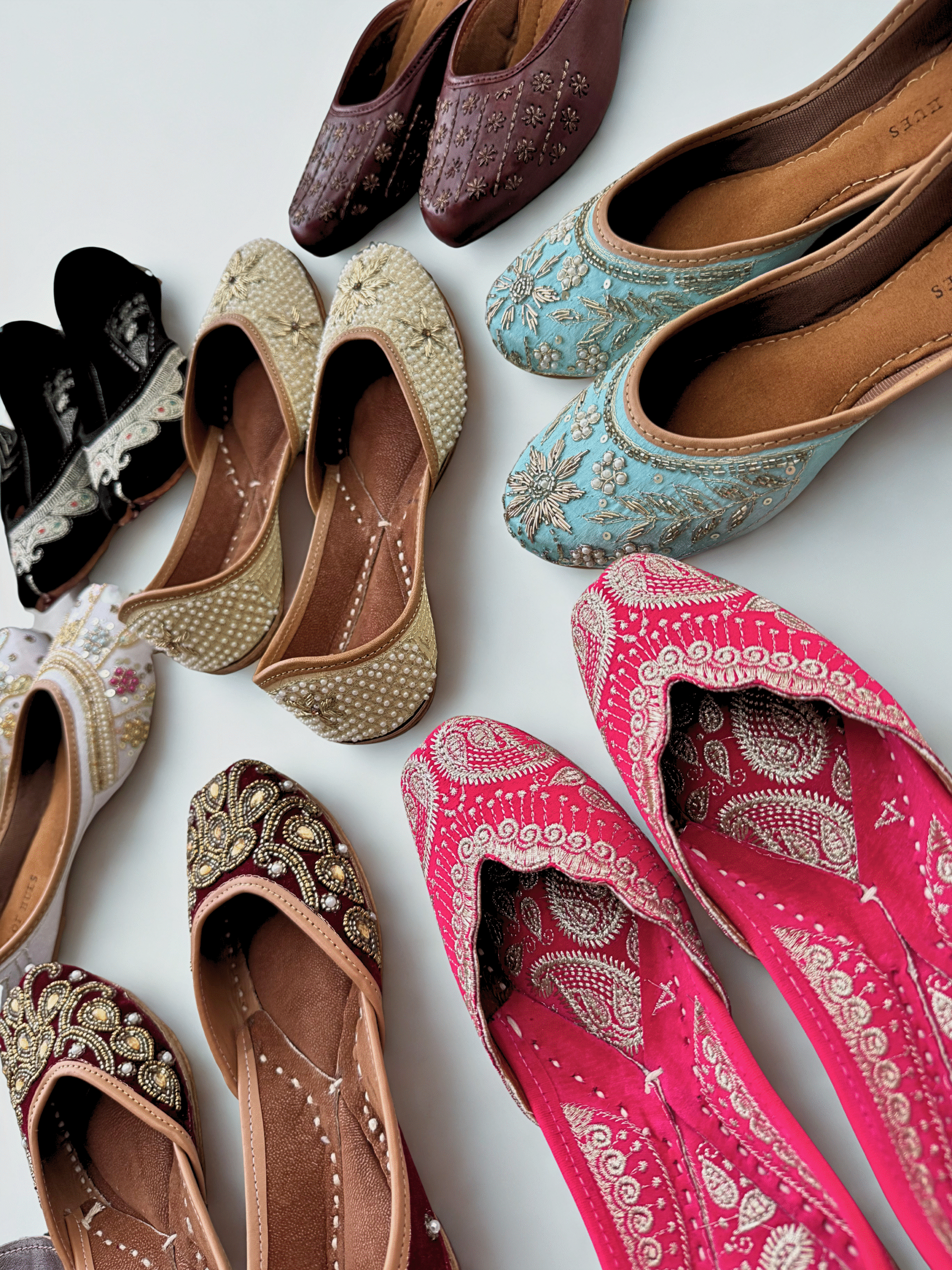 Welcome to Haus of Hues, where tradition meets trend. Our soulful, handcrafted juttis are a canvas of color and craftsmanship, designed to celebrate your roots while keeping it effortlessly chic. Festive occasion or your everyday sparkle, our juttis are designed to hug your feet and turn heads with every step.